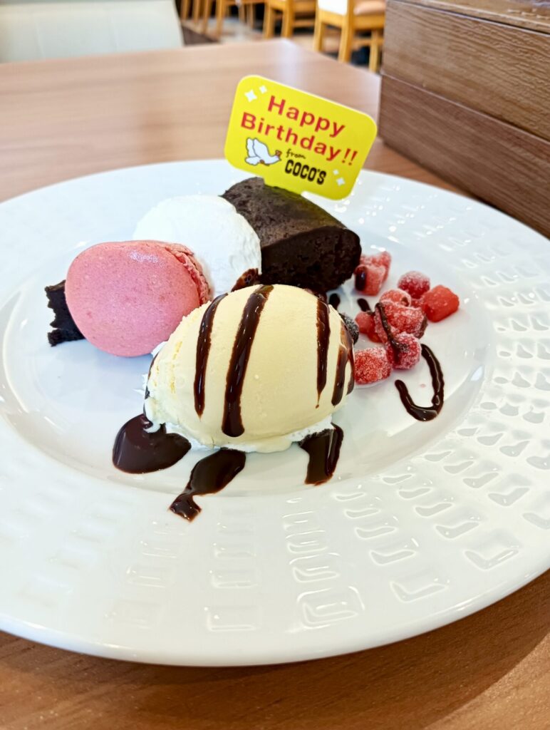 ココスでは誕生日に来店すると、デザートプレートのサービスが受けられます。