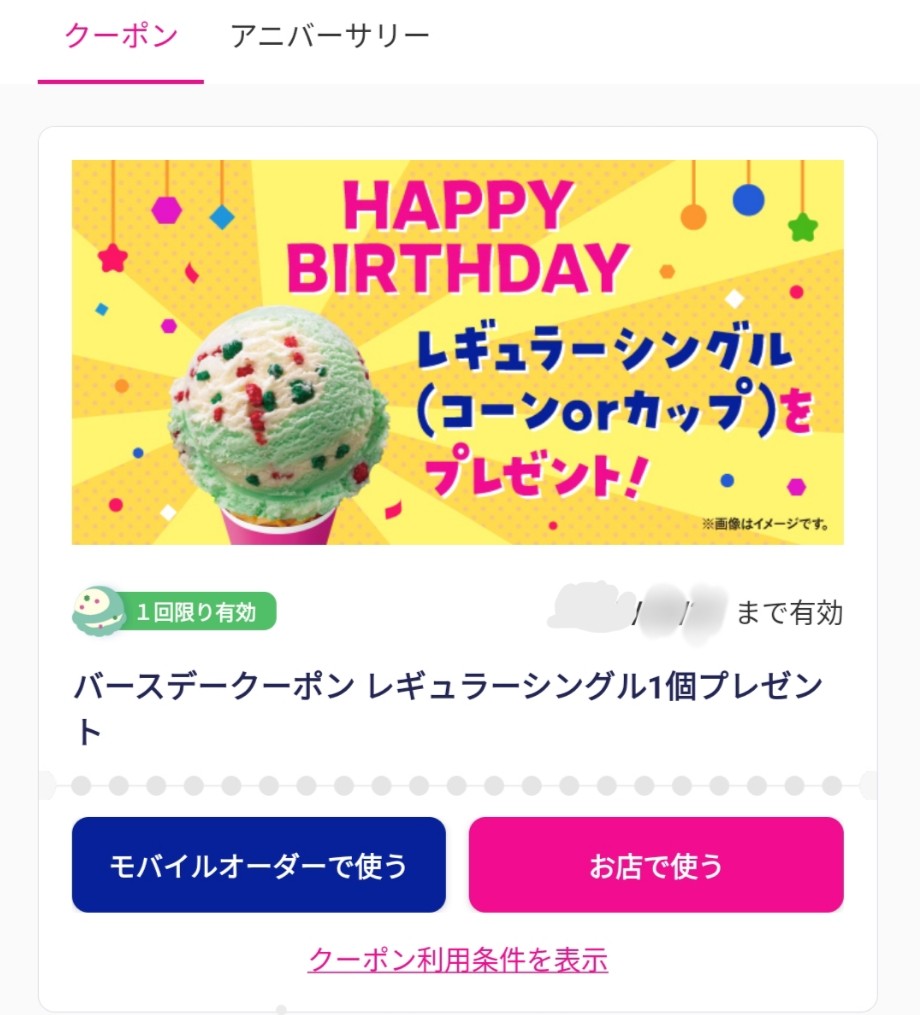 サーティワン誕生日特典:レギュラーシングル1個無料